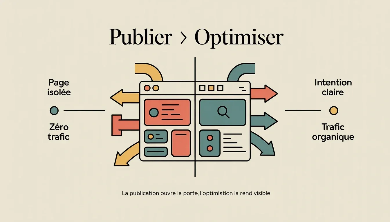Publier une page, c’est lui ouvrir une porte. L’optimiser, c’est lui donner une raison d’être trouvée. J’ai vu des sites avec 80 articles publiés en trois mois, zéro trafic organique. Pas parce que le contenu était mauvais, mais parce qu’aucune page ne répondait clairement à une intention de recherche identifiable.