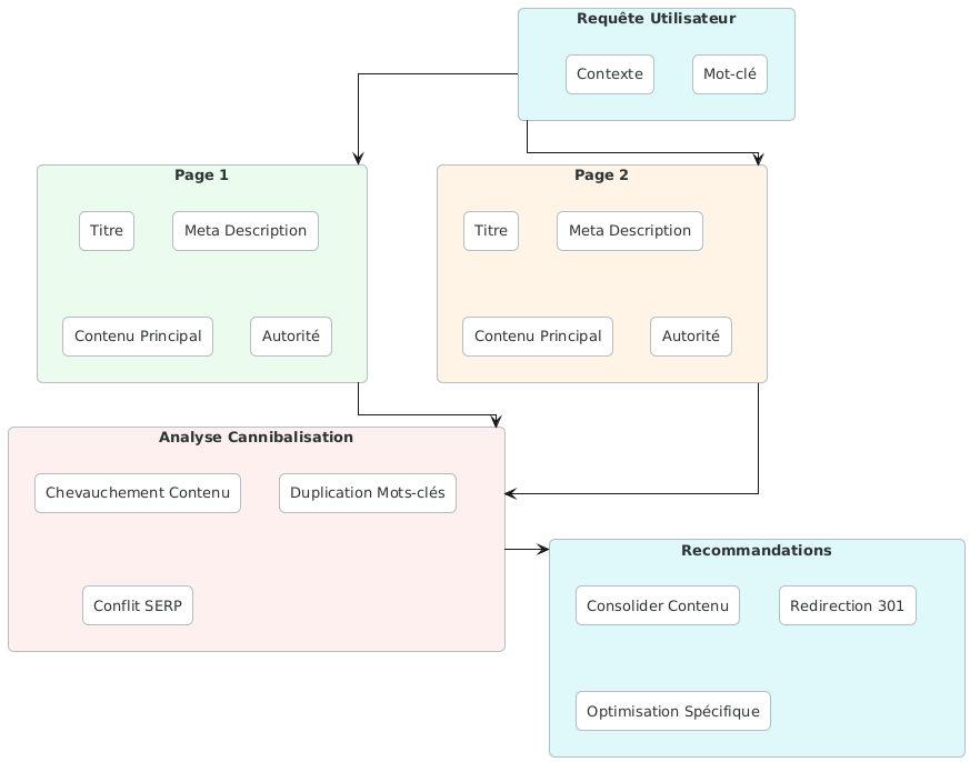 La cannibalisation survient quand plusieurs pages d’un même site ciblent la même requête sans signal clair pour Google sur laquelle privilégier. Le moteur se retrouve dans une situation d’ambiguïté réelle : les deux pages se font concurrence, aucune ne bénéficie de l’autorité cumulée qu’une seule page forte aurait générée.