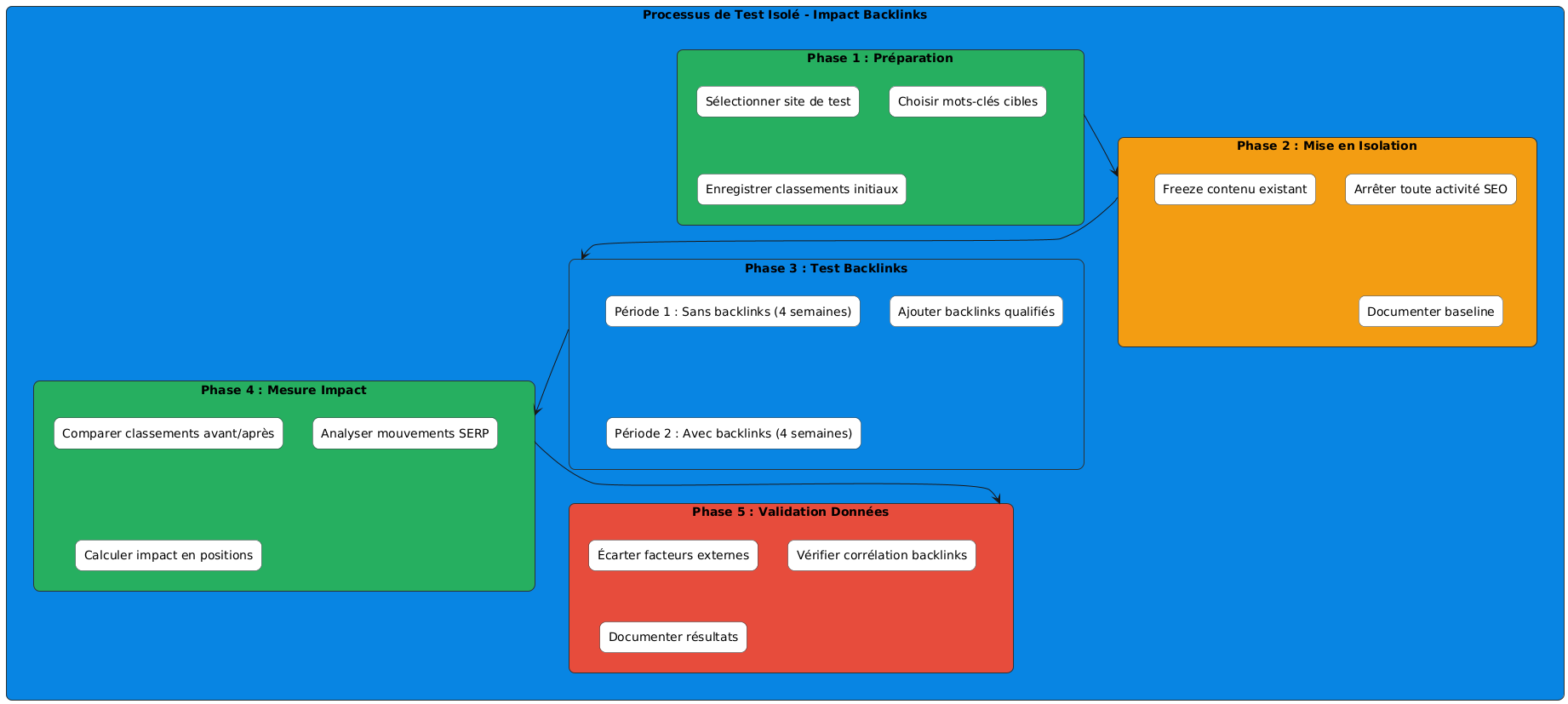 Pour isoler l’effet des backlinks, la méthode la plus rigoureuse que j’utilise consiste à :