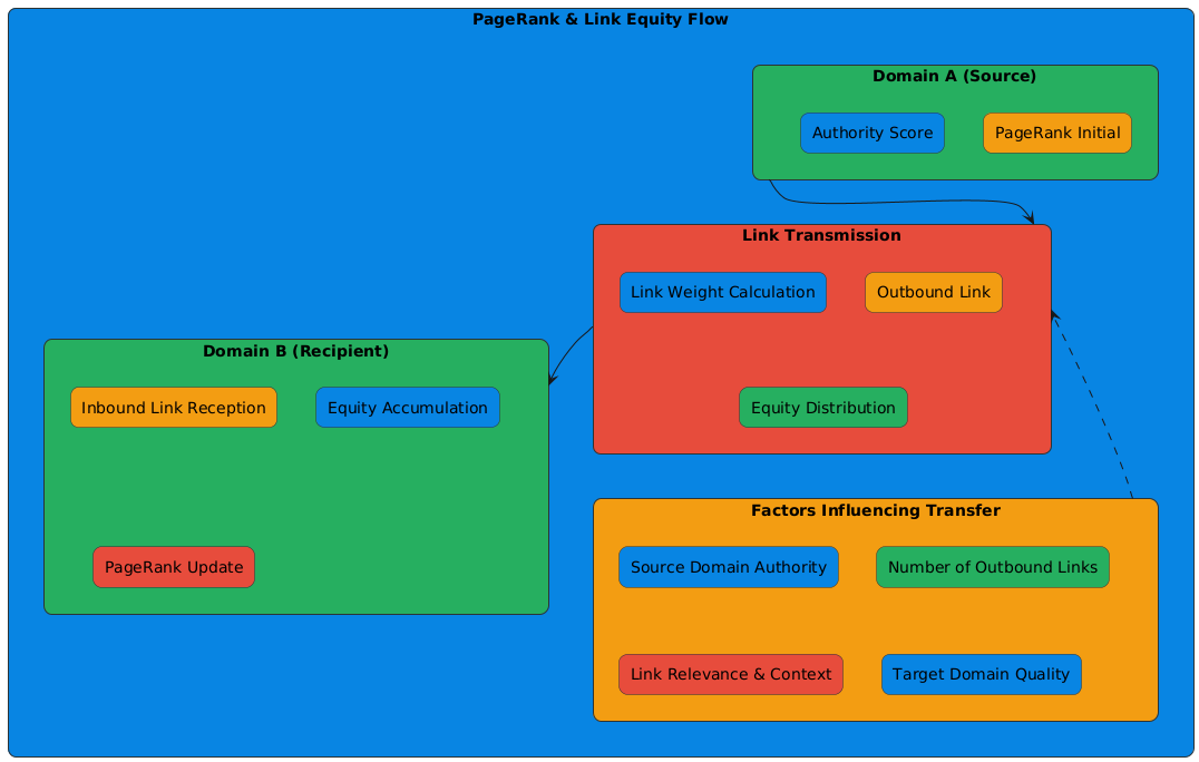 Depuis les origines de PageRank — développé par Larry Page et Sergey Brin à la fin des années 1990 — les liens hypertextes fonctionnent comme des votes de confiance entre sites. Quand un site reconnu dans son domaine pointe vers ton contenu, il lui transfère une fraction de son autorité. Ce mécanisme s’appelle le link equity, ou jus de lien. Il circule d’un domaine vers un autre à travers les liens dofollow, et contribue directement au score d’autorité accordé aux pages cibles.