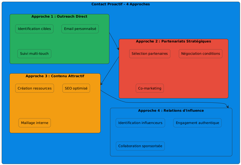 L’efficacité d’une campagne d’outreach dépend de la pertinence thématique du site contacté, de la personnalisation du message, de la valeur réelle du contenu proposé, et de la légitimité perçue de l’émetteur. Un mail générique envoyé à 500 webmasters ne produit généralement rien d’utile. Avant d’engager cette démarche, encore faut-il avoir défini quelles méthodes d’acquisition privilégier selon ton secteur et tes ressources — guest posting, broken link building, digital PR : chaque approche a son profil de risque et d’efficacité.
